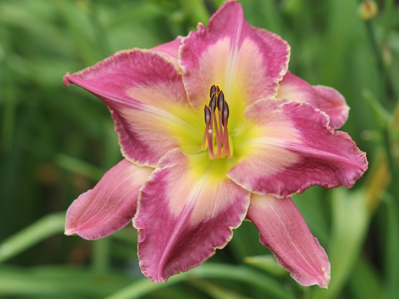 Benz 09 - 28" M 5.5" DOR TET Rose pink self above a lime green throat | |