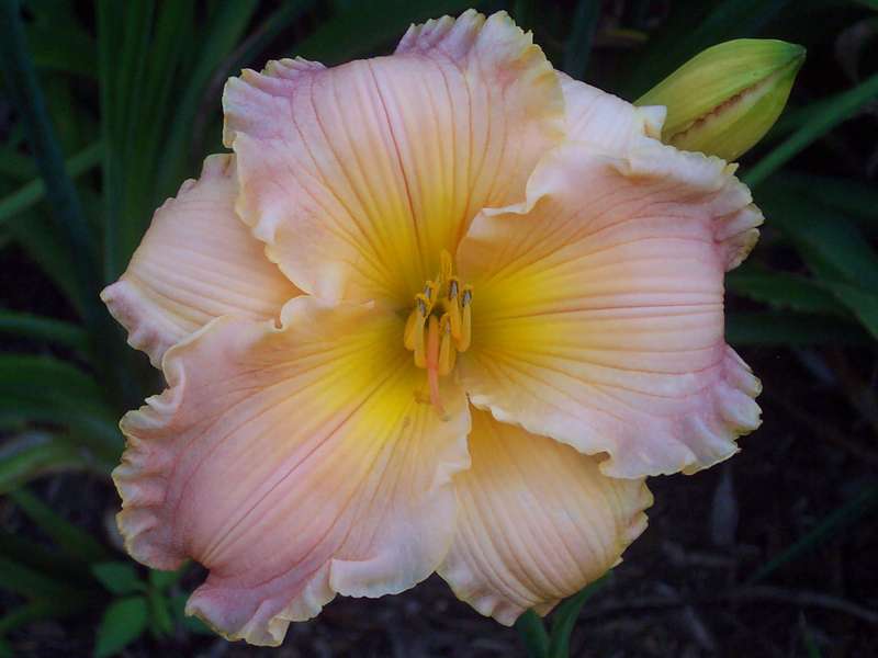 Douglas,H 14 - 25" EM 7" DOR DIP Peachy pink cream midribs, yellow green throat |