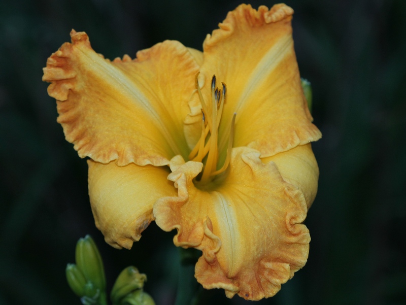 Sobek 14 - 28" E 4.63" DOR DIP Orange with faint purple overlay; throat green deep in heart. Ruffled. NOC |
