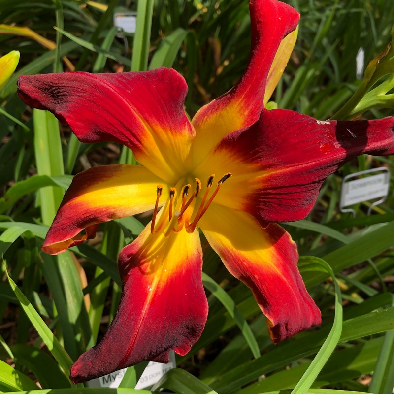 Reeder 16 - 48" M 4.5" DOR DIP Bright Cherry Red trumpet, white midrib 30 buds |