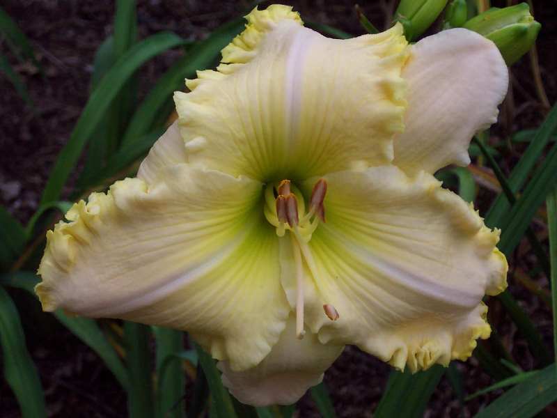 Davisson 07 - 20" EM 3" SEV DIP bright gold self above green throat, UF Crispate | |