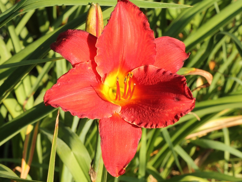 Oakes 84 - 30" M 7" DOR TET Bright red self, velvety, green throat, sunfast |