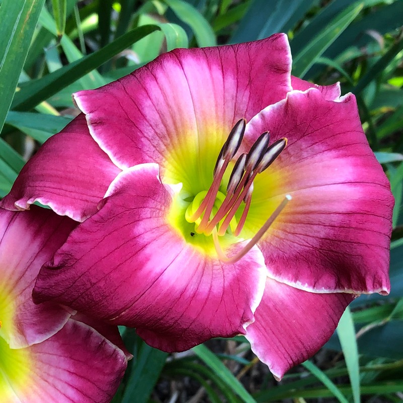 Rice,J 07 - 28" M 6" DOR TET Pink with rose eye and edge above green throat |