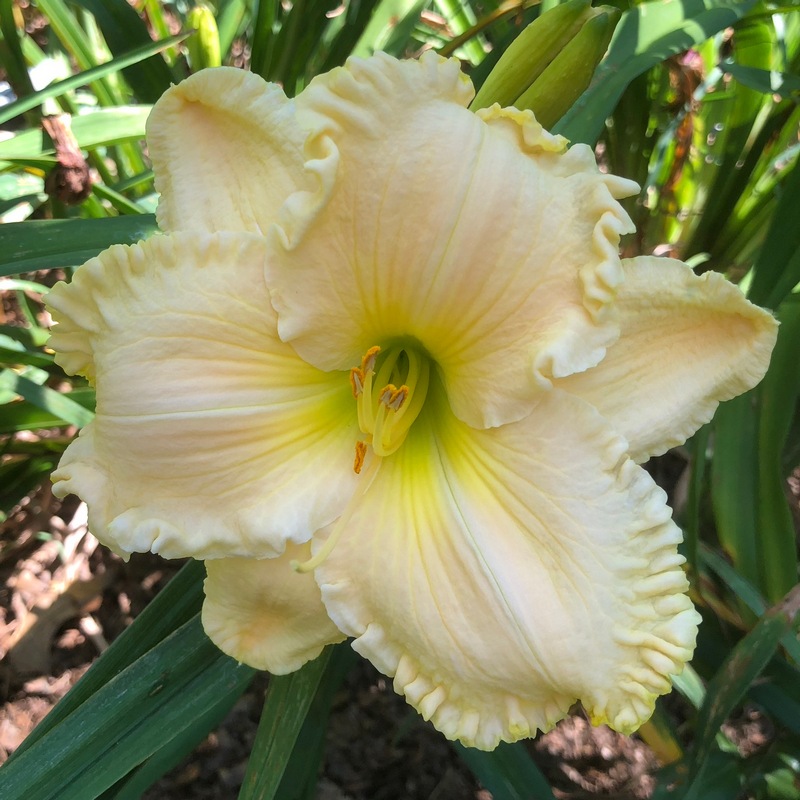 Riggle 98 - 22" EM 5.5" EVR DIP Cream peach with pale lavender band and yellow throat |