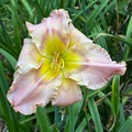 Rice-JA 10 - 38" M 5.5" DOR TET Pink peach with gold edge above green throat |