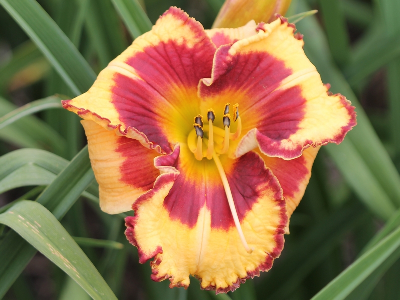 Schwarz,B 04 - 34" M 8.5" DOR TET Red self above green throat UF crispate |