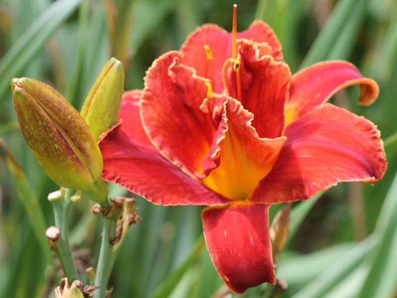 Sobek 14 - 28" E 4.63" DOR DIP Orange with faint purple overlay; throat green deep in heart. Ruffled. NOC |