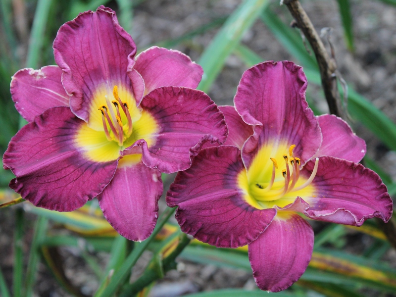 Emmerich 20 - 40" EM 8" SEV TET Very dark cranberry grape, can also be cranberry merlot or dark cranberry or merlot depending on the weather, one third midribs, white edge, green throat, and pinched petals UF, Crispate, Vfra |