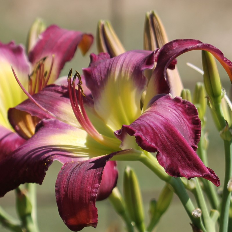 Davisson 13 - 43" EM 9" DOR TET Dark raspberry red, rose wm wide cream yellow green throat |