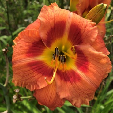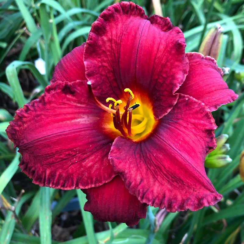 Oakes 84 - 30" M 7" DOR TET Bright red self, velvety, green throat, sunfast |
