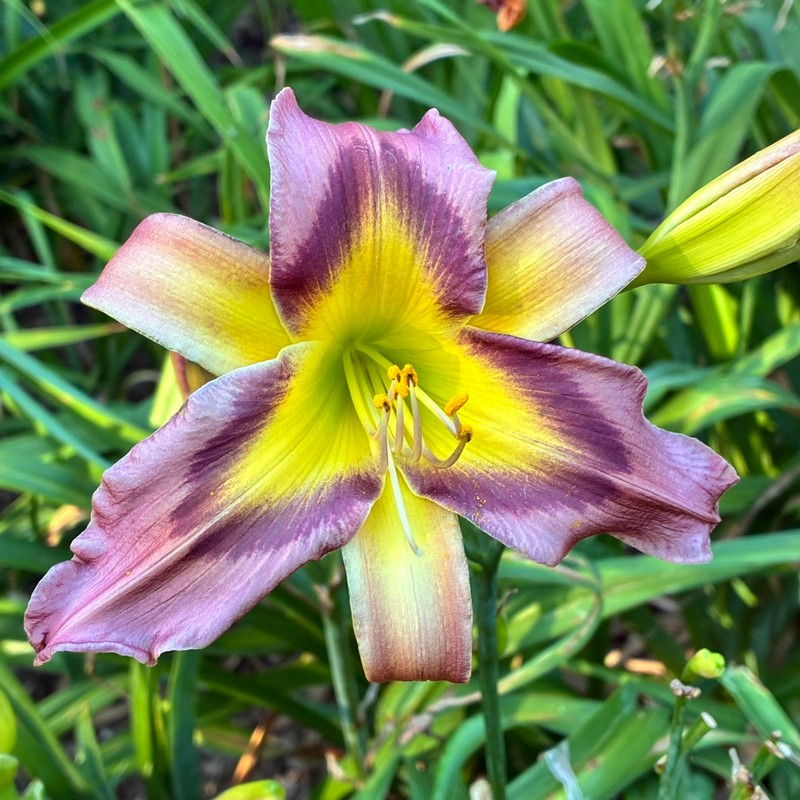 Davisson 11 - 42" EM 9" SEV TET Lilac w lighter lilac sepals, orchid watermark, yellow to green throat |