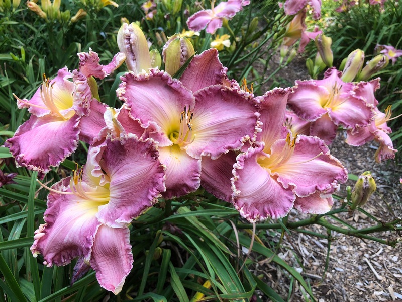 Hanson, C 09 - 58" M 7" DOR TET Fuchsia rose lavender blend w rose pink w/m chartreuse throat | |