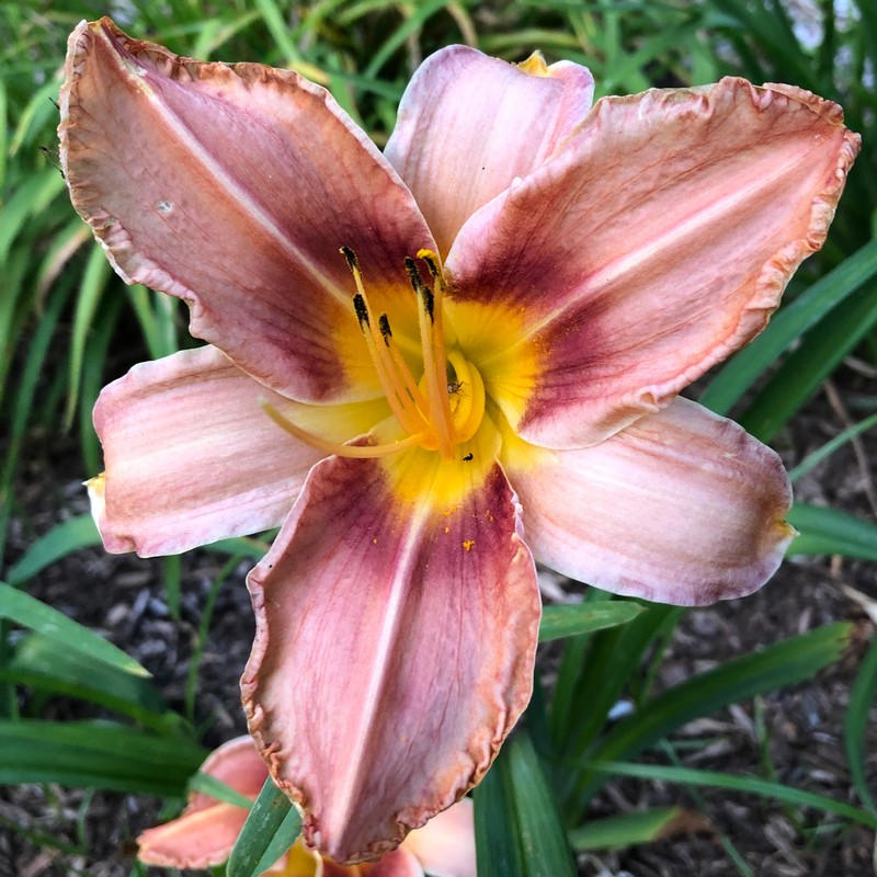 Douglas,H 12 - 26" M 5.5" DOR TET Melon peach with rose colored triangular pencil eye |