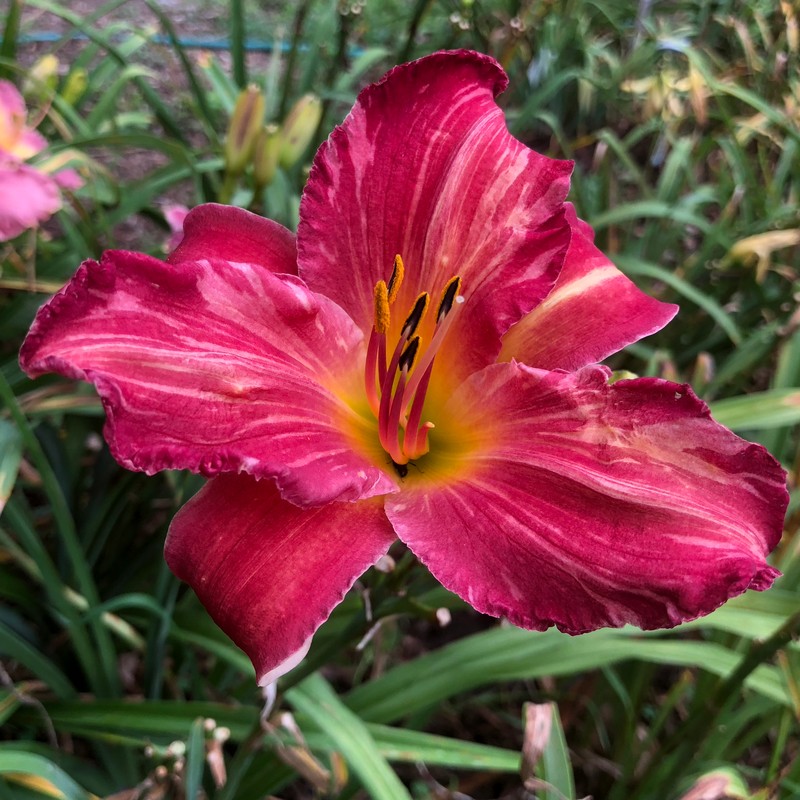 Gossard 2011 - 46" M 10" DOR TET Hot rose pink with a green throat cascade. It is a true spider with a 4.0 to 1 spider ratio. Flowers measure over 12 inches when spread out. |
