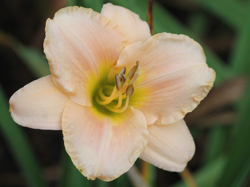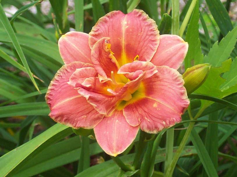 Bachman 13 - 35" ML 9" DOR DIP Washed flesh orchid w/deep green throat turning to yellow UF Crispate |