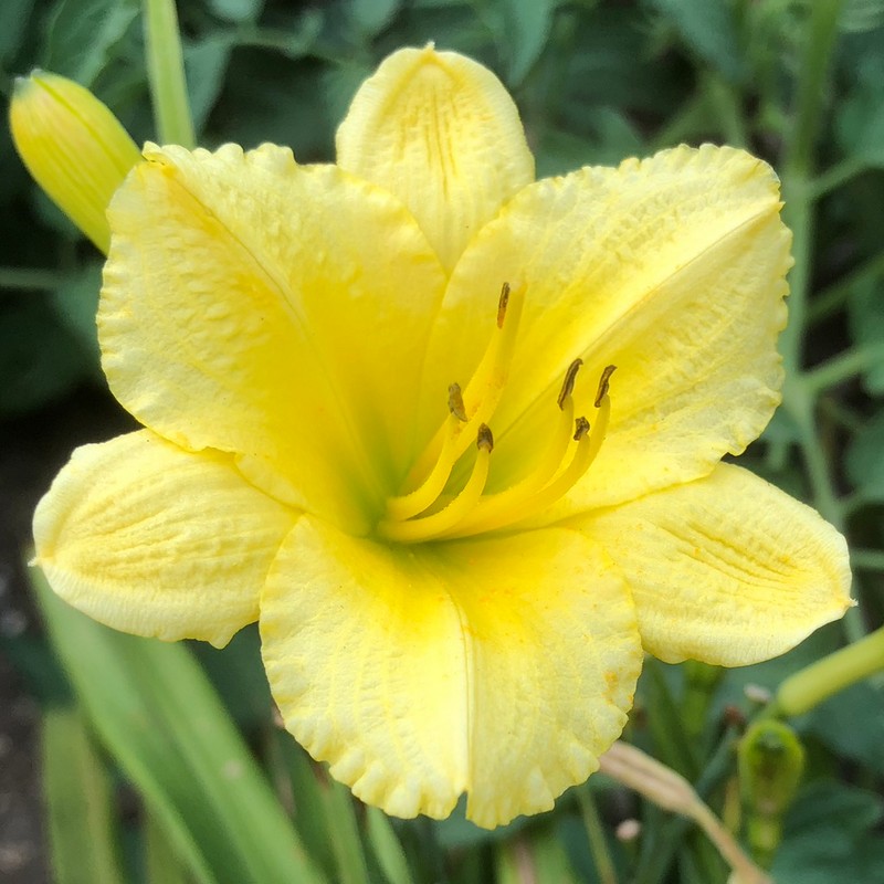 Warner 77 - 24" EM 3.5" DOR TET Yellow butter, ruffled, green throat, wide petals |
