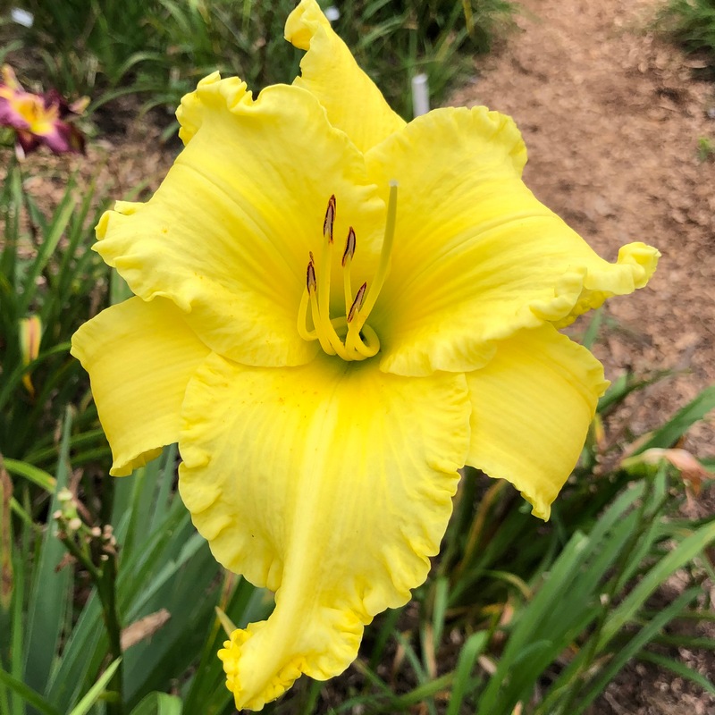 Holmes-M, 16 - 34" M 6.5" DOR Tet Yellow self, green throat, ruffled edge |