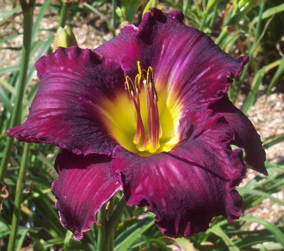 purple with and even darker eye or band around a yellow lime throat. What this plant lacks