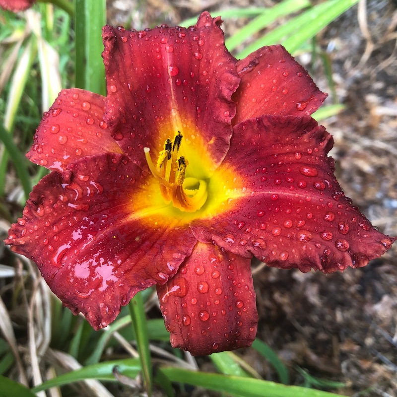 Sobek 14 - 36" M 4.5" DOR TET Deep saturated velvety red; green throat. Ruffled. The white edge is sometimes more prominent. 5 branches 25 buds |