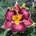 Brooker 07 - 32" EM 6.5" SEV TET Burgundy red self, slightly darker band, triangular green throat (Was VG In Living Color) |