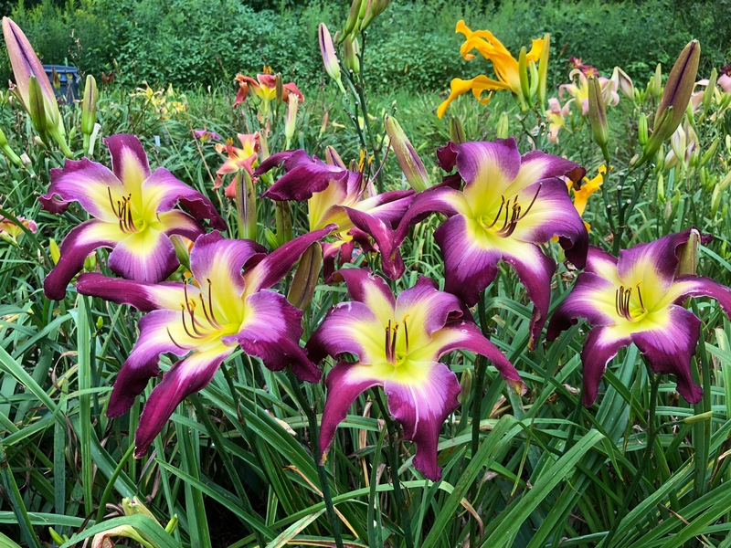 Bachman 04 - 48" EM 7.75" SEV DIP Purple self above chartreuse throat UF Cascade |