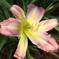 Rice,J 07 - 28" M 6" DOR TET Pink with rose eye and edge above green throat |