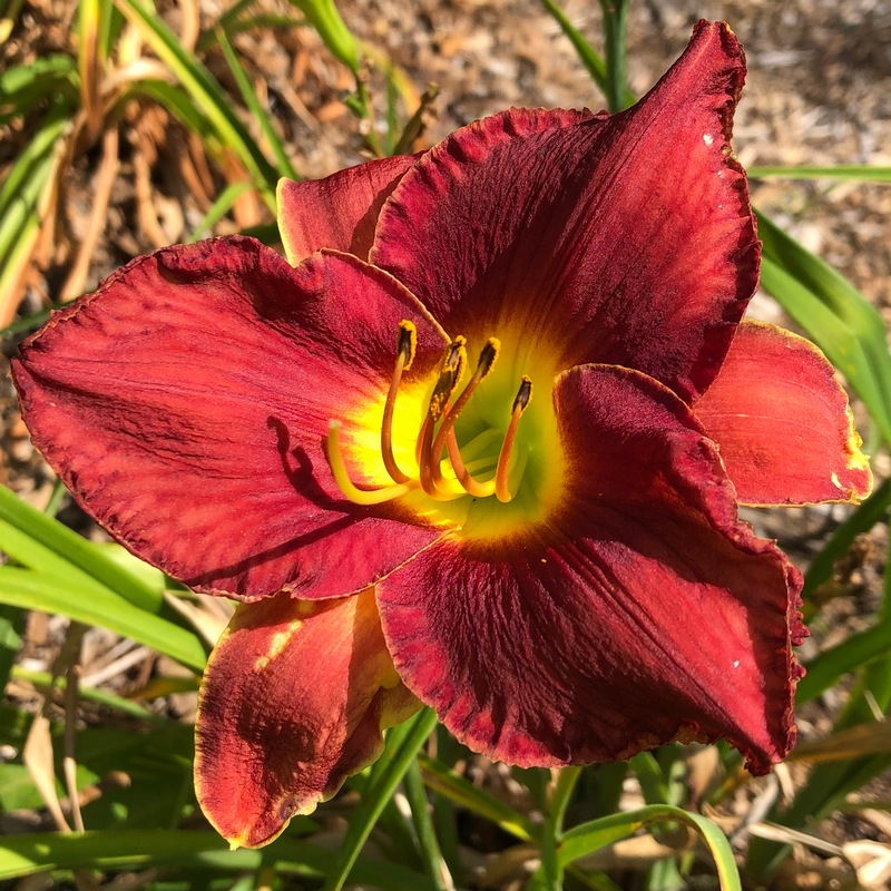 Oakes 84 - 30" M 7" DOR TET Bright red self, velvety, green throat, sunfast |