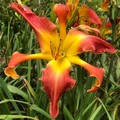 Bearce 90 - 30" L 5" SEV TET Blazing scarlet self w/large round yellow green throat |