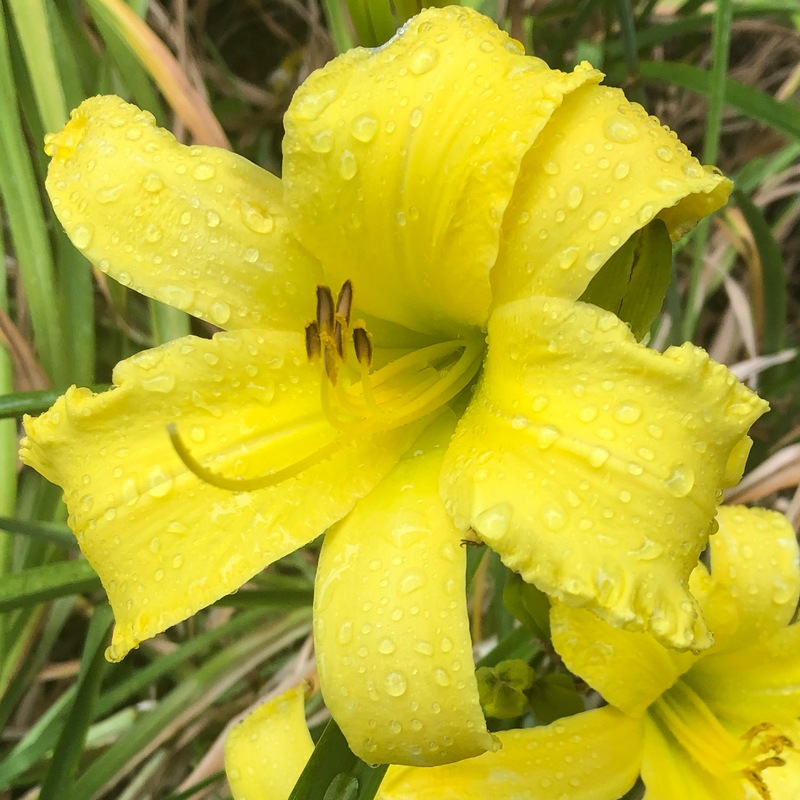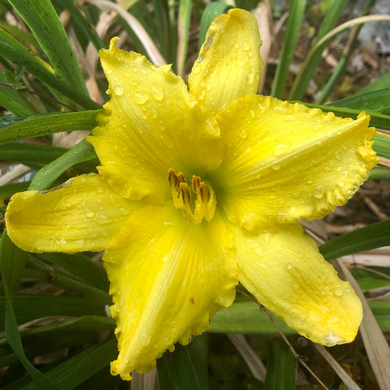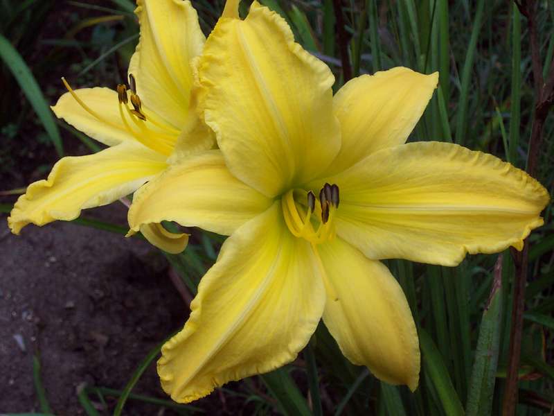 Holmes-M, 16 - 34" M 6.5" DOR Tet Yellow self, green throat, ruffled edge |