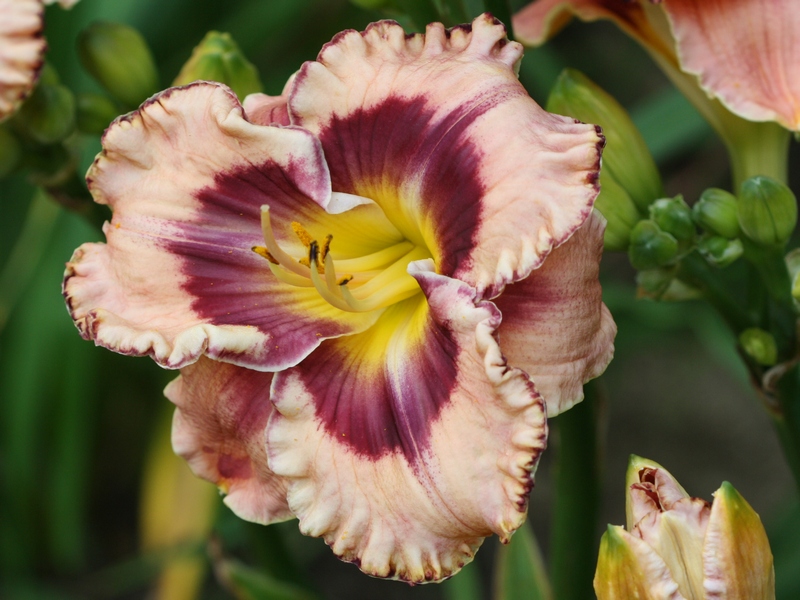 Stamile 02 - 28" EM 5.5" SEV TET Light brown with blue purple eye and edge above green throat |
